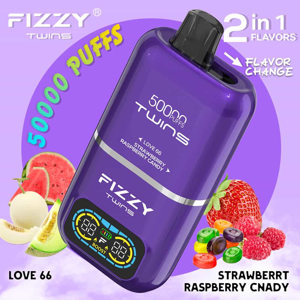 Fizzy Twins 50000 Puffs combines dual flavor switching, rechargeable Type-C battery, and mesh coil technology for rich vapor. Wholesale pricing available with fast EU shipping.